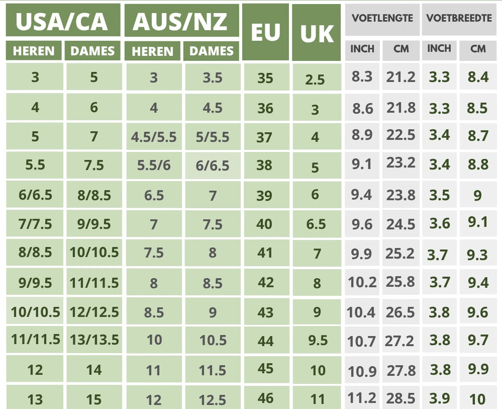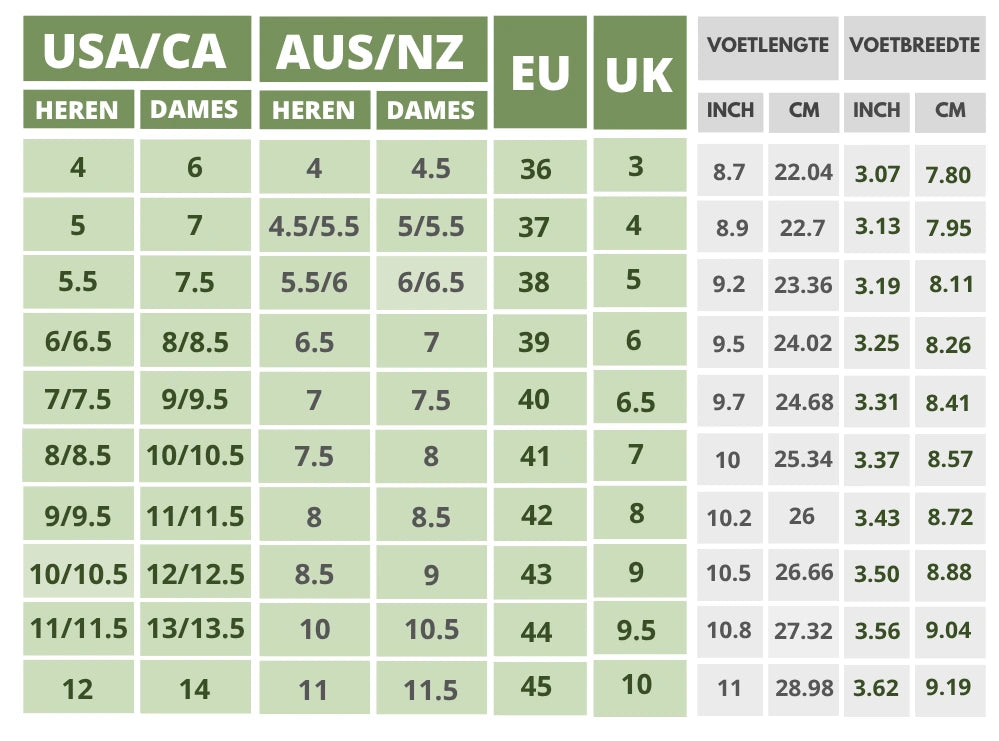 Als het om barefoot schoenen gaat, is het essentieel om de juiste pasvorm te vinden - vooral als je online bestelt. Deze maattabel voor schoenmaten helpt je bij het opmeten van je voeten en het vinden van de ideale pasvorm voor Hike Footwear. Daarnaast vind je hier tips voor het reinigen van schoenen om ze in topconditie te houden.