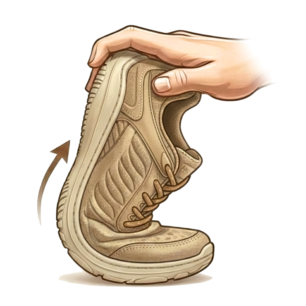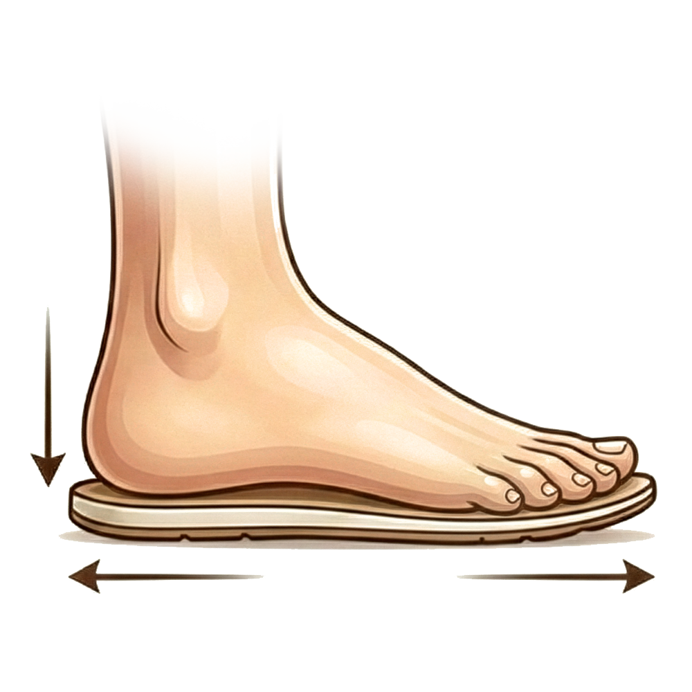 ✓ Breed teengedeelte voor balans en doorbloeding Geeft de tenen ruimte om natuurlijk te spreiden — verbetert balans en vermindert druk bij fasciitis plantaris en stijve gewrichten.